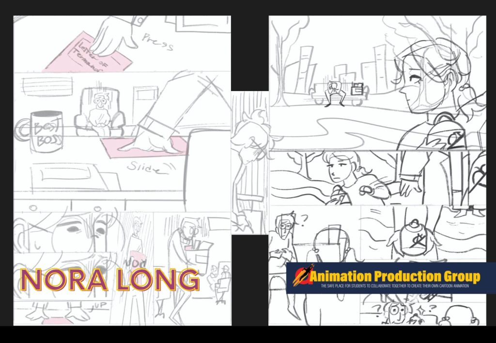 Check out this comic by our student, Nora Long. Based on a textbook drawing prompt from The Shonen Jump Guide To Making Manga by Viz Media. Students were given a two-sentence word prompt with no visual examples, a blank comic page-spread template, and 30 minutes to rough sketch their idea